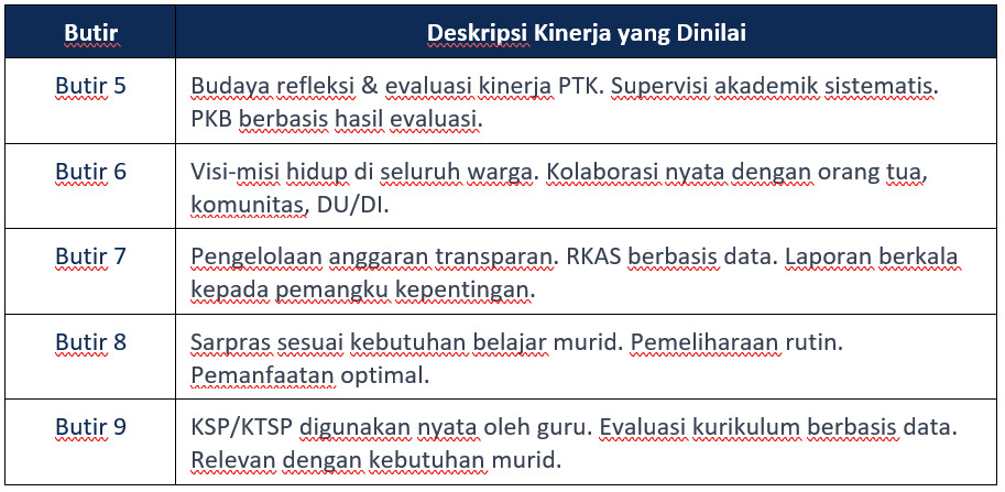 Pertanyaan untuk Butir 5 (Budaya Refleksi & Evaluasi Kinerja):