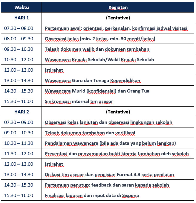 - Hadir tepat waktu dan mengikuti seluruh agenda visitasi